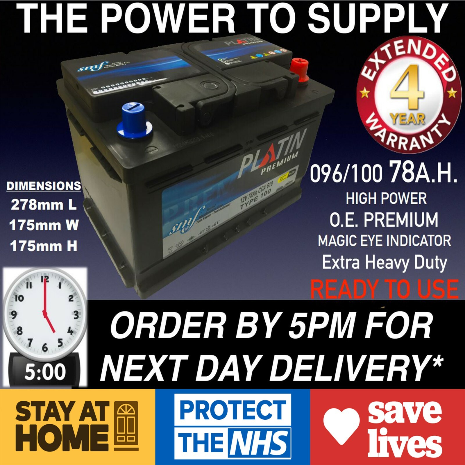 E U New Genuine Oem Heavy Duty Car Battery Type 096 100 78ah 4 Year Guarantee For Sale