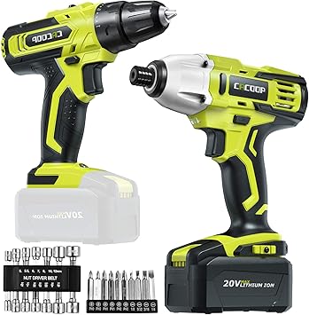 Cacoop 20v Max Cordless Drill And Impact Driver Combo Kit Battery Powered Electric Tools Set With 4 0ah Battery And Fast Charer 2 Tool 3 8 Drill 1 4 Impact Driver Amazon Com
