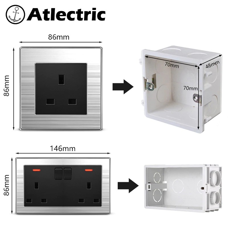 Atlectric Uk Plug Socket Double Socket 13a Power Wall Outlet Switch Control Socket Led Indicator Shopee Indonesia