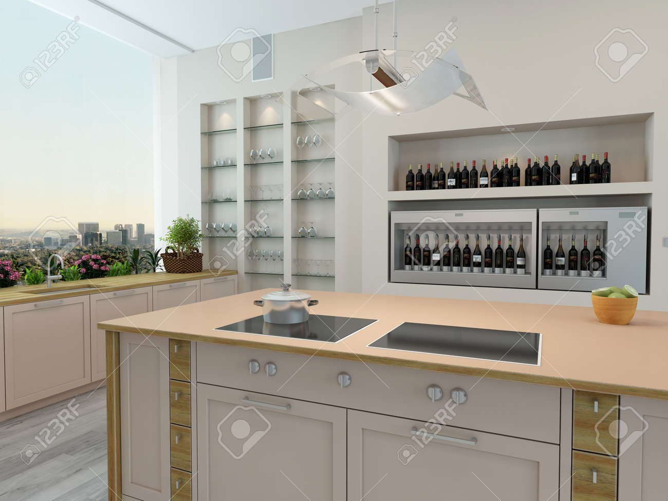 Modern New Kitchen Interior With Built In Wall Shelves And A Stock Photo Picture And Royalty Free Image Image 28688037